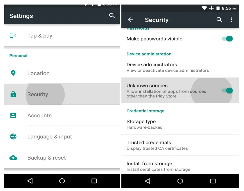 - Enable Unknown Sources: Prior to the installation process, go to your device settings, proceed to the “Security” menu then you should enable the “Install from Unknown Sources” feature.